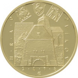 Dne 29. května 2018 vydává Česká národní banka pátou zlatou minci z cyklu Hrady. Jejím tématem je hrad Zvíkov. Mince je ražena ze zlata o ryzosti 999,9 a vydává se ve dvojím provedení, v běžném a špičkovém (proof), které se liší povrchovou úpravou a provedením hrany. U mincí špičkové kvality je pole mince vysoce leštěné a reliéf je matován, hrana je hladká. Mince běžné kvality mají hranu vroubkovanou. Průměr mince je 28 mm, hmotnost 15,55 g a síla je 1,9 mm. Při ražbě mincí jsou povoleny odchylky v průměru 0,1 mm a v síle 0,15 mm.